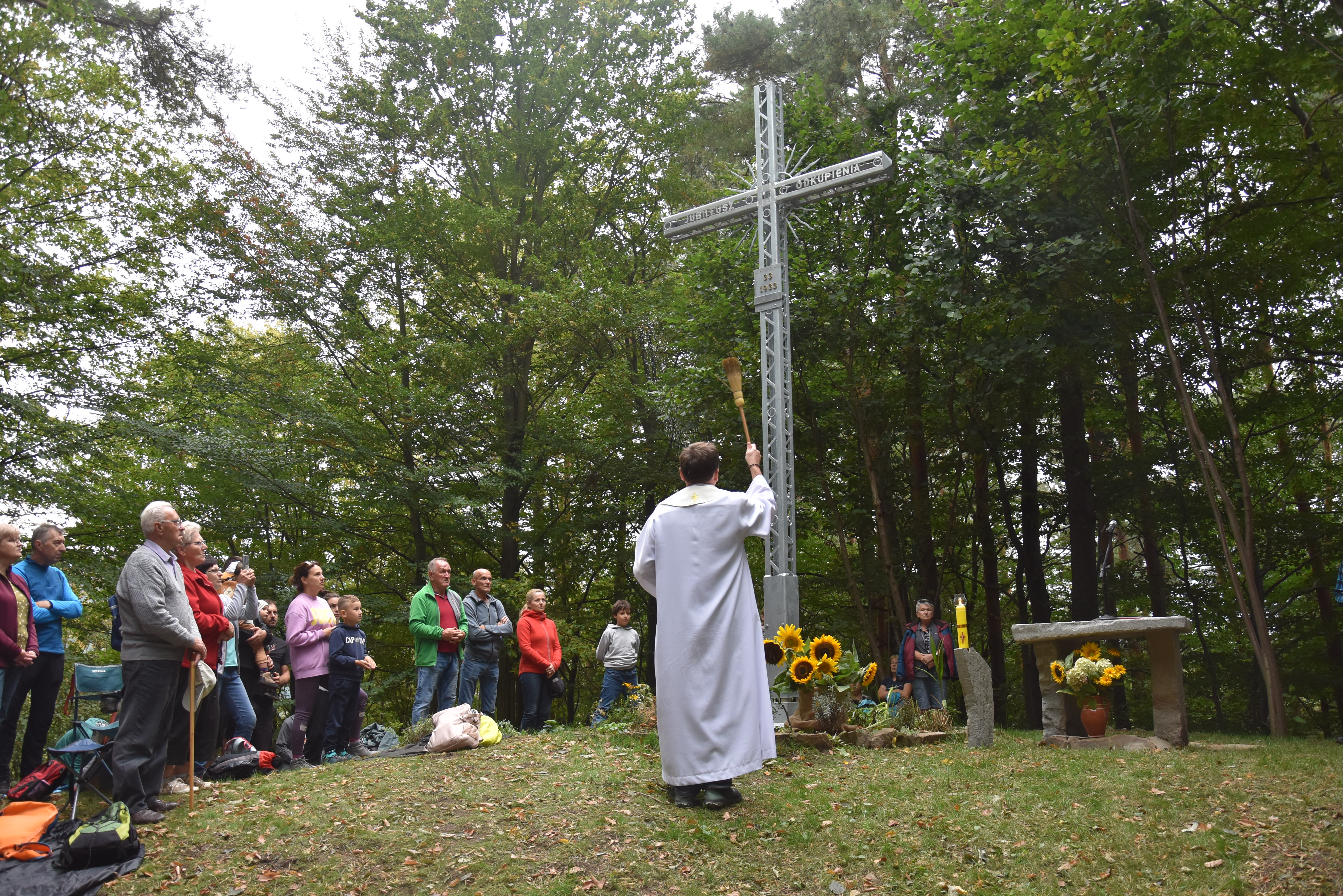 I tak właśnie w ostatnią niedzielę sierpnia, czyli 31 sierpnia 2025 roku – Jubileuszowego Roku – na Bystrej Górze pod nowo ustawionym krzyżem zgromadzili się parafianie, by uczestniczyć we Mszy św. i historycznym dla parafii i parafian zdarzeniu: poświęcenie krzyża i miejsca nazwanego odtąd Zakątkiem Odkupienia.